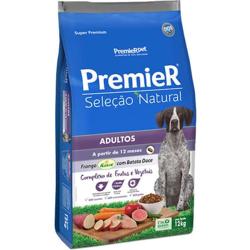 Ração Premier Seleção Natural Cães Adultos Raças Pequenas Frango/Batata Doce - 12kg- Indicada para cães adultos; - Contém complexo de frutas e vegetais em sua fórmula; - Proporciona mais saúde e vitalidade ao pet; - Enriquecida com fibras e sais minerais; - Baixo teor de sódio, que preserva o sabor natural dos ingredientes,