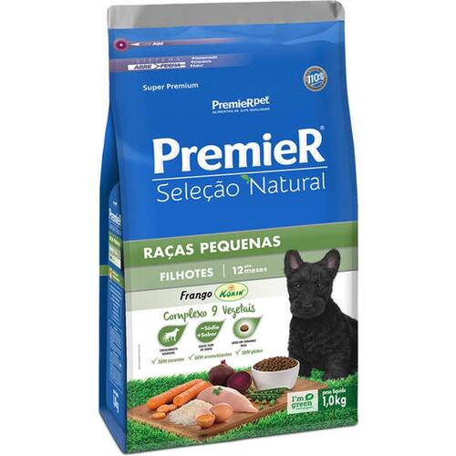 Ração Premier Cães Seleção Natural Filhotes Raças Pequenas - 1kg - Baixo teor de sódio: preserva o sabor natural dos ingredientes; - Suporte às defesas naturais: associação de vitaminas e minerais; - Crescimento saudável: níveis ótimos de proteína e energia, essenciais aos cães filhotes.; - Complexo de frutas e vegetais: ingredientes selecionados como fontes naturais de fibras e sais minerais que nutrem de maneira saudável.