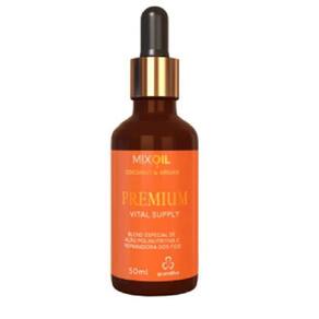 Premium Vital Supply Mix Oil Coconut & Argan 50ml é um blend especial de ação polinutritiva e reparadora dos fios. Ideal para o pós-praia ou piscina e também cabelos fragilizados por processos químicos.