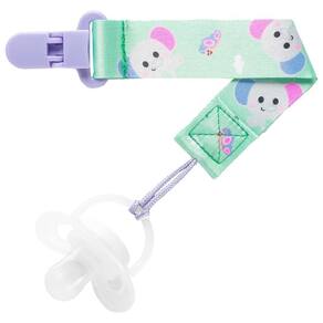 Características Técnicas: Idade recomendada: a partir de 3 meses Cor predominante: verde e roxo Estampa: elefante Composição: alça 100% poliéster, prendedor 100% polipropileno PP e cordão 100% poliamida Clipe com trava
