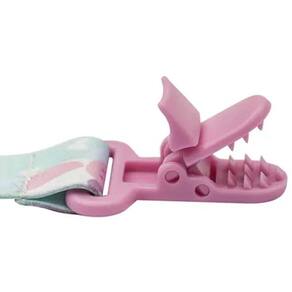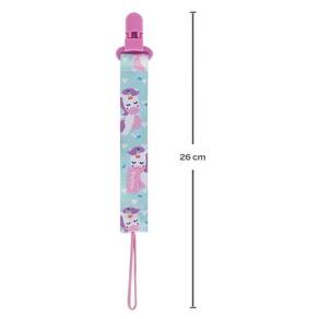 Prendedor de Chupeta para Bebê Buba com Fecho Trava e Estampa de Unicórnio Rosa.