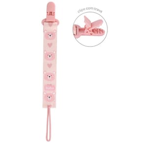 Prendedor de Chupeta Ursinho Buba - Cor: Rosa