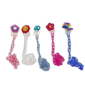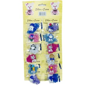 Prendedor de chupetas de corrente ellen & erica Prendedor de chupetas de corrente ellen & erica O prendedor de chupetas ellen & erica é seguro, prático e funcional. Ele pode ser preso facilmente na roupa do bebê. Com isso, a chupeta permanece limpa e pode ser facilmente alcançada. O produto também serve para prender outros objetos de uso do bebê, como mordedores. Além disso, estes prendedores são super coloridos e vem em diferentes formatos, deixando a criança mais bonita e estilosa Disponível em embalagens com 12 unidades. Como usar Prenda o clipe na roupa do bebê e a chupeta na ponta da argola. Advertências Não se recomenda o uso do prendedor de chupetas no primeiro mês de vida. Lavar com água e sabão neutro. Guardar a embalagem e/ou rótulo para eventuais consultas. O prendedor de chupetas deve ser preso na roupa do bebê e nunca próximo ao pescoço. Não deve impedir ou limitar a movimentação da cabeça. Nunca aumente o comprimento da fita corrente , pois há risco de estrangulamento. Não usar o acessório quando o bebê estiver deitado. O uso do prendedor de chupetas deve ser supervisionado por um adulto, assim como todo produto destinado ao bebê. Antes de cada uso verifique por rasgos ou perfurações. Se houver, descarte o produto imediatamente. o ministério da saúde adverte: a criança que mama no peito não necessita de mamadeira, bico ou chupeta. O uso de mamadeira, bico ou chupeta prejudica o aleitamento materno. Marca: Não Informado