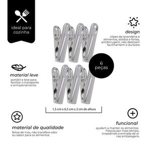 Composto por seis prendedores ajuda a manter os alimentos frescos por mais tempo, impedindo a entrada de ar nas embalagens. Fabricados em aço inox, são resistentes e duráveis, além de possuírem design que permite um melhor fechamento das embalagens.