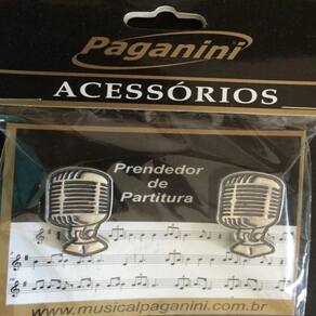 Produto fabricado com metal injetado no formato de "Microfone". Possui fixação através de "Clipet Jacaré" proporcionando maior pressão e fixação das folhas, sistema de abrir e fechar de fácil manuseio. O produto pode ser utilizado para fixar folhas de partituras, hinário, livros, entre outros... Além de todos esses detalhes citado, produto com design moderno, excelente qualidade e durabilidade. Características: