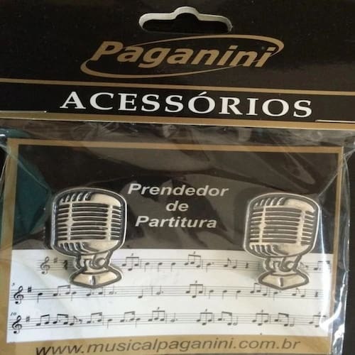 Pode ser utilizada em qualquer tipo de partitura, livro, método, hinário; Prendedor/Clipet Formato Microfone; Possui 01 clipet em cada formato instrumento; Produto fabricado em metal; Design moderno, diferenciado; Acabamento na cor Cromado; Sistema abre e fecha por pressão mola; Produto fabricado no Brasil.