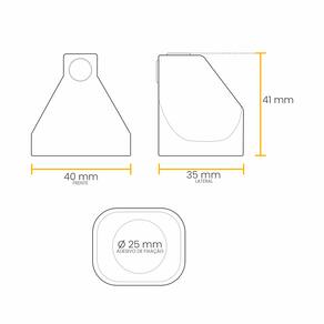Frente: 40 mm Lateral: 35 mm Altura: 41 mm Diâmetro do adesivo de fixação: Ø 25 mm