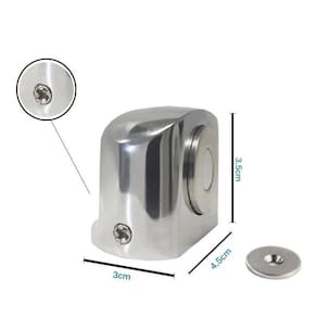 Prendedor de porta magnético com amortecimento. O sistema de amortecimento por molas e o imã garantem uma boa fixação de forma leve e suave, conservando suas maçanetas e paredes. Projetado para trazer mais segurança e diminuir os impactos quando se mantém a porta aberta, evitando que o vento feche a porta. Fixação no chão por meio de parafusos e buchas acompanham . Especificação: Corpo em liga metálica zamak. Altura: 3 cm, largura: 5,2 cm, profundidade: 4 cm. O valor anunciado é para um fixador. Ean: 7899206178544