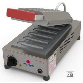 Descrição Técnica: Disponíveis com 6 cavidades; 12cm x 3 cm Lâmpada piloto indicador de energia. Modelo elétrico com termostato para controle de temperatura Estrutura em aço inox com prensa maciça em alumínio Resistência em aço inox. Termostato automático para regulador de temperatura de 80º C a 180º C Termostato interno que reservem de limitador de temperatura. Pés plástico. Capacidade 90 Lanches / hora Tensão 110 ou 220 Volts Frequência 50/60 Hz Potência resistência -1.500 W 110 V e 1.750W 220V . Consumo Médio: 1.3 Kw/h . Estrutura em aço inox escovado. Sistema de desarma/bloqueio automático de segurança Peso Líquido - 8,5 Kg Peso Bruto - 9,2 Kg Medidas totais : 17cm A x 23cm L x 50cm P Medidas com a embalagem: 19cm A x 24cm L x 52cm P