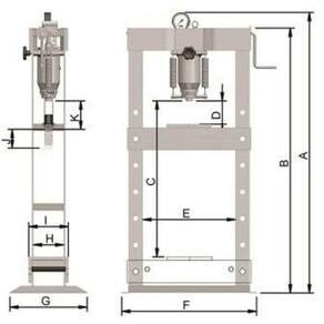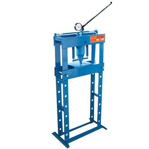 Prensa hidráulica com válvula de sobrecarga e pistão com retorno automático,ainda conta com uma mesa de trabalho com altura ajustável. O manômetro é bem posicionado para uma fácil leitura.