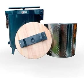 - Praticidade em prensar os torresmos - Com possibilidade para diversas aplicações Extrator de frutas, queijo etc. - Equipamento produzido em estrutura de aço resistente. - 3 pés removíveis para maior utilidade da máquina. - Balde de 22L - Peneira produzida em chapa galvanizada para um melhor fluxo da banha - Prensa com madeira de alta durabilidade.