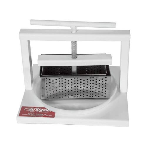 A prensa para queijo Bigolar é projetada para retirar o soro do queijo. Um equipamento de manuseio prático e mecanismo simples. Resistente e durável suas formas são feitas em aço inox, produto atóxico e de fácil higienização, Sendo uma para peças de 1kg e outra para 2 kg.Marca: BigolarModelo: 7110Número de Formas: 2Dimensões das formas: Para peças de 1kg e 2 kgMaterial das formas: Aço InoxDimensões totais da prensa: 28 x 34 x 31 cm A x L x C Dimensões aproximadas da embalagem : 29 x 35 x 32 cm A x L x C Peso aproximado do produto: 4,8 KgPeso aproximado da embalagem: 5 Kg