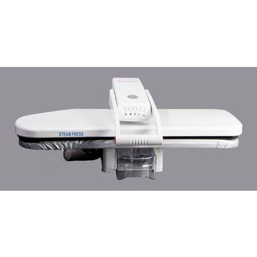 Prensa de passar a vapor, com área de trabalho de 80x28cm. Superfície de pressão 7 vezes maior que os ferros de passar comuns, o que reduz o tempo de passar em até 50%.