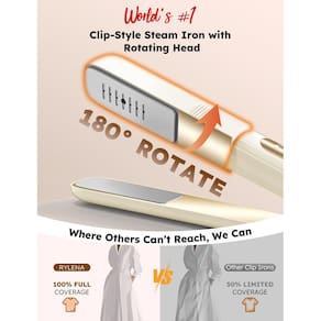 - O primeiro ferro giratório do mundo: os ferros de fixação típicos lutam com roupas grandes, como vestidos, centros de camisas e cortinas, devido à sua estrutura fixa, cobrindo apenas 50% do tecido. O ferro a vapor Rylena apresenta um design inovador de rotação de 180°, alternando perfeitamente entre um ferro de fixação, um sistema de vaporização portátil e uma chapinha. Ele garante uma cobertura 100% total, de superfícies amplas a detalhes intrincados, com eficiência 200% aprimorada