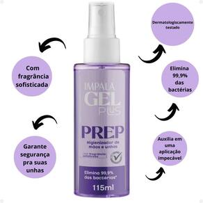 Com o Prep Higienizador Impala Gel Plus 115ml, você não apenas prepara suas unhas para a aplicação de esmaltes, mas também cuida da saúde delas, garantindo que estejam sempre limpas e prontas para brilhar. Experimente e sinta a diferença na sua manicure!