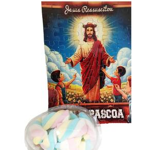 Presente de Páscoa Marshmallow Colorido + Quebra-cabeça Jesus Ressuscitado de 60 peças Presente de Páscoa Marshmallow Colorido + Quebra-cabeça Jesus Ressuscitado de 60 peças