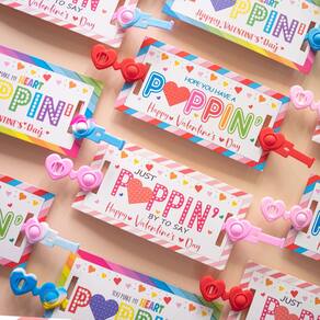 -?Presentes de Dia dos Namorados para crianças?Nossas pulseiras de pop pop com cartões oferecem diversão e entretenimento para seus filhos! Perfeito para crianças no Dia dos Namorados, eventos de classe, troca de presentes, prêmios em sala de aula, bilhetes de amor, lembrancinhas e assim por diante.
