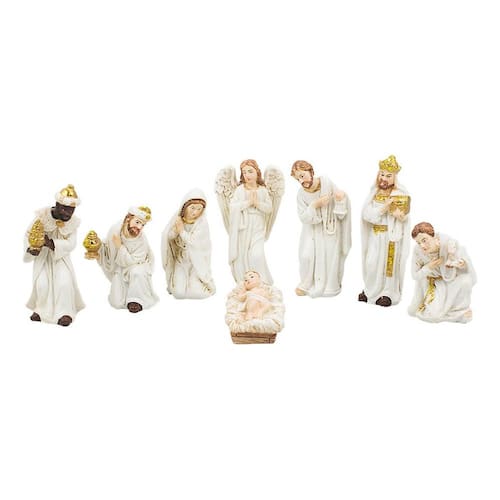Presépio Vestimenta Branca Com 11 Peças 7.5cm - Enfeite Religioso