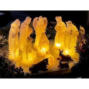 Presépio De Natal Com Luz De Resina 30Cm 11 Peças