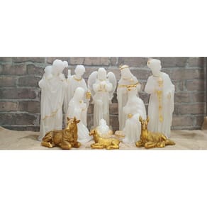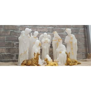 Material: Produzido em resina durável, cada figura é detalhadamente esculpida e conta com um acabamento fino e resistente, projetado para uso prolongado e seguro. Dimensões: Com 30 cm de altura, este presépio é perfeito para decorar aparadores, mesas centrais e altares, servindo como peça central de qualquer ambiente festivo. Iluminação Integrada: Equipado com luzes suaves e estrategicamente posicionadas, o presépio destaca cada figura e adiciona um brilho acolhedor à cena da natividade. As luzes criam um efeito iluminado que transforma o ambiente em uma celebração cheia de calor e significado. 11 Peças Detalhadas e Ricas em Expressão: Composto por Maria, José, o Menino Jesus, os Três Reis Magos, pastores e animais, cada figura é minuciosamente trabalhada com expressões e detalhes que refletem a serenidade da cena. A iluminação dá ainda mais realce aos contornos e texturas. Design Clássico e Versátil: As figuras possuem detalhes tradicionais que combinam com diferentes estilos de decoração, desde o clássico até o contemporâneo, adaptando-se a espaços como lares, igrejas ou eventos natalinos.