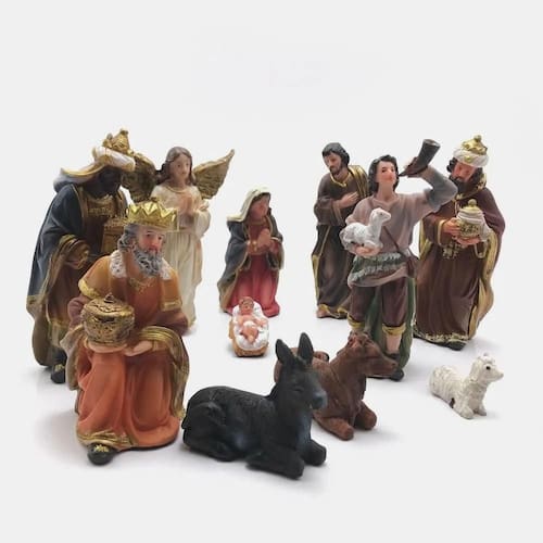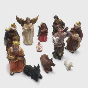 Presépio de natal sagrada família contém: 11 peças tamanho: imagens - 11cm comp. x 5cm larg. x 3cm prof. / menino jesus na manjedoura - 3,5cm comp. x 2cm larg. x 3cm alt. / animais - 6cm comp. x 3cm larg. x 3cm alt. composição: resina atenção: imagem meramente ilustrativa. Pode ocorrer mudanças no tom da cor para o produto real ou mudanças na embalagem sem aviso prévio por parte do fornecedor/fabricante. Marca: Iracema Collection E Marca: Iracema Collection E