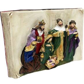 Presépio Estatueta Nascimento Jesus Livro Sagrado 3D 18x28cm -