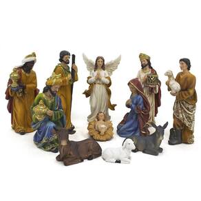 Presépio Importado Resina 11 peças 20 cm Presépio, do latim Praesaepe, significa estrebaria ou curral. É um gesto que ajuda a preparar a celebração do nascimento de Jesus. Geralmente é formado pelo menino Jesus, Maria, José, os Reis Magos, o anjo, os pastores e os animais. Dimensões: Menino Jesus: Altura: 4 cm - Largura: 7 cm - Profundidade: 5 cm Maria: altura: 14 cm - Largura: 7 cm - Profundidade: 8 cm José: altura: 20 cm - Largura: 8 cm - Profundidade: 8 cm Anjo: altura: 20 cm - Largura: 11 cm - Profundidade: 7 cm Baltazar: altura: 20 cm - Largura: 10 cm - Profundidade: 9 cm Gaspar: altura: 20 cm - Largura: 9 cm - Profundidade: 7 cm Melchior: altura:15 cm - Largura: 9 cm - Profundidade: 9 cm Pastor: altura: 19 cm - Largura: 7 cm - Profundidade: 6 cm Burro: altura: 7 cm - Largura: 9 cm - Profundidade: 4 cm Vaca: altura: 7 cm - Largura: 9 cm - Profundidade: 4 cm Ovelha: Altura: 5 cm - Largura: 6 cm - Profundidade: 3 cm Manjedoura: altura: 4 cm - Largura: 8 cm - Profundidade: 6 cm Dimensões aproximadas do produto. Produto fabricado a mão, podendo sofrer variações de cores. Marca: Amém Decoração Religiosa