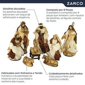 Presépio de natal natalino 8 peças tecido e resina plus seda 25cm magizi Cor: off white/dourado O presépio de natal da marca magizi é a peça perfeita para trazer o espírito natalino e a tradição para a sua decoração. Com um design encantador e cuidadosamente elaborado, ele cria um ambiente acolhedor e cheio de significado. Feito com materiais de alta qualidade, este presépio é durável e possui detalhes que encantam. Seja para enfeitar a sua sala, o seu espaço de oração ou um cantinho especial, ele será o destaque da sua decoração de natal. Características do presépio de natal magizi: . Composto por 8 peças: o presépio é composto por 8 peças que retratam, com riqueza de detalhes, as figuras centrais do natal, proporcionando um ambiente completo e harmonioso; . Cuidadosamente detalhados: cada peça é feita com extremo cuidado, destacando expressões e detalhes que tornam o presépio ainda mais realista e especial, transmitindo a verdadeira essência do natal; . Fabricados com poliresina e tecido: confeccionado com poliresina e tecido, o presépio combina a durabilidade do material com a suavidade e realismo das roupas, garantindo um produto que encanta e dura por muitos natais; . Detalhes dourados: os detalhes dourados adicionam um toque de sofisticação e elegância, dando um brilho especial à sua decoração e fazendo com que o presépio se destaque como uma peça de destaque; . Roupas off white com marrom: as roupas em tons off white com marrom trazem um visual clássico e atemporal, perfeito para combinar com diferentes estilos de decoração e criar um ambiente acolhedor. Encante-se com a qualidade e o encanto da marca magizi O presépio de natal 8 peças da magizi é mais do que um simples enfeite; é um símbolo de amor, união e celebração. Com a qualidade e atenção aos detalhes que só a magizi oferece, ele é ideal para quem deseja compor uma decoração natalina cheia de charme e tradição. Leve para casa um toque de magia e celebre o natal de forma especial com o presépio da magizi Especificações: . Marca: magizi; . Modelo: presepio plus seda 8f/25cm off wh/do; . Quantidade de peças: 8 peças; . Material: 45% poliresina, 50% tecido, 5% plástico. Atenção: . As cores apresentadas podem sofrer pequenas alterações de acordo com as configurações da tela do aparelho. Vantagens de comprar na zarco br: . Envios em até 24 horas úteis: com a zarco br, seu pedido é processado rapidamente e enviado em até 24 horas úteis, garantindo agilidade e eficiência na entrega; . Produtos novos: cada item disponível é totalmente novo, assegurando que você receba um produto em perfeitas condições, sem uso prévio; . Produtos com : com a zarco br, seus produtos contam com oficial, oferecendo segurança e tranquilidade na sua compra.