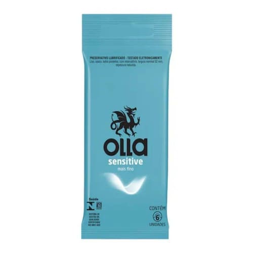 Descrição: preservativo lubrificado olla sensitive é mais fino, possibilitando maior sensação de contato, sensibilidade e prazer na relação. Ação/ativos: olla sensitive é um preservativo lubrificado e mais fino. A menor espessura possibilita maior sensação de contato, proporcionando mais sensibilidade e prazer durante a relação. Produzidos com a mais alta tecnologia, todos os preservativos são testados eletronicamente e passam por um controle de qualidade certificado mundialmente. Látex de borracha natural vulcanizada com enxofre e lubrificante óleo de silicone. Modo de usar: o envelope que contém o preservativo deve ser aberto pelo picote no sentido vertical e somente na hora do uso. Não utilizar objetos cortantes, afiados ou pontiagudos para abrir a embalagem. Colocar o preservativo no pênis assim que ocorrer a ereção, antes de qualquer contato genital ou penetração. Para colocá-lo, leve-o até a extremidade do pênis ereto e aperte a ponta do preservativo de modo a evitar a retenção de ar em seu interior. Desenrolá-lo até a base do pênis. Logo após a ejaculação, quando o pênis ainda estiver ereto, retire-o da vagina vagarosamente, segurando a borda do preservativo para que não haja vazamento de esperma. O produto deve ser utilizado uma única vez e deve ser descartado corretamente logo após o uso, não devendo ser jogado no vaso sanitário. Use um novo preservativo a cada relação sexual. Este anúncio contém: 01 olla sensitive preservativo c/6