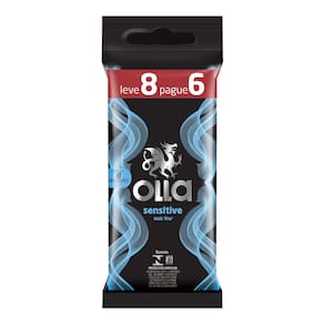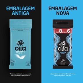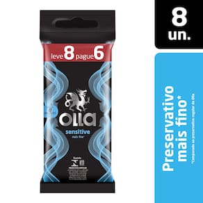 Preservativo Camisinha Olla Sensitive Leve 8 Pague 6 Unidades O Preservativo Olla Sensitive é uma camisinha lubrificada mais fina do que as camisinhas comuns, que proporciona maior sensação de contato Ean: 7896222718846