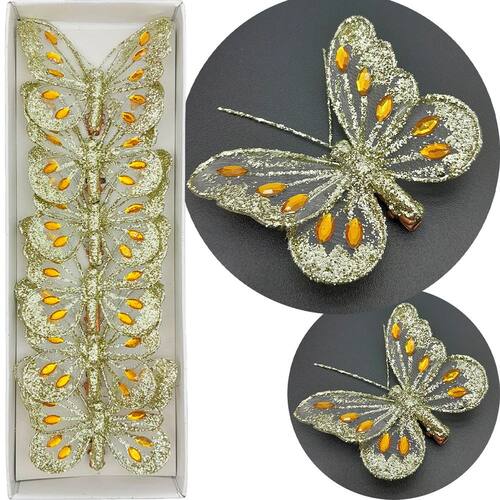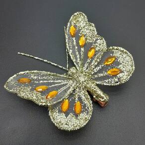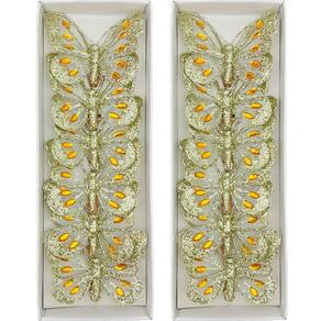 Presilha Prendedor Enfeite Borboleta Dourado Natal 8cm 12Pçs -