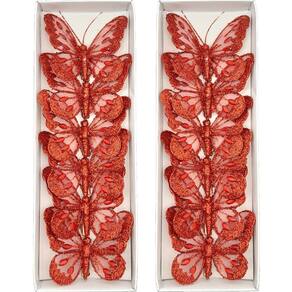 4 Kits Com 6 Presilhas Formato Borboleta Vermelho de 8x8cm