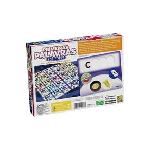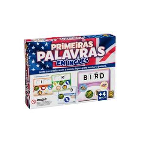 Primeiras Palavras em Inglês - Junte as figuras e monte a palavra. O jogo Primeiras Palavras em Inglês possui uma combinação estratégica de 28 palavras com 4 letras cada. O jogo estimula o raciocínio da criança que, sem perceber, transita rapidamente da linguagem oral para a linguagem escrita. Ao sobrepor as cartelas que possuem uma mesma figura, o nome dela será misteriosamente revelado.