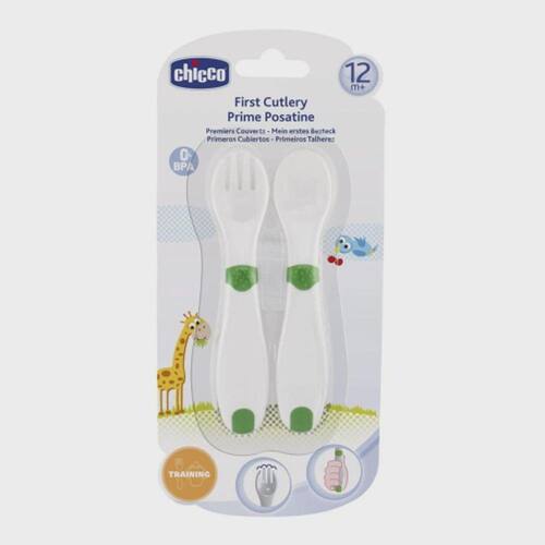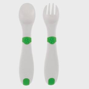 Os primeiros talheres, ideais para o bebê se alimentar sozinho, foram concebidos para ajudá-lo a comer corretamente e de forma independente, como um adulto, graças ao cabo ergonômico com revestimento anti-derrapante. A forma específica da ponta permite introduzir a quantidade certa de alimento na boca do bebê, respeitando o seu crescimento. A forma do garfo foi estudada para ajudar o bebé a aprender a utilizá-lo, sem qualquer problema e com total segurança.