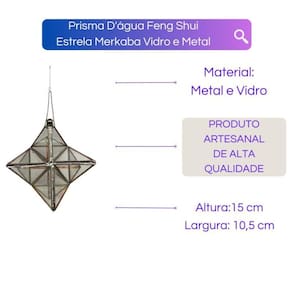 Prisma DÁgua Feng Shui em Vidro e Metal - Escolha o Modelo Cor: Estrela Merkaba 15 cm Prisma DÁgua Feng Shui em Vidro e Metal - Escolha o Modelo
