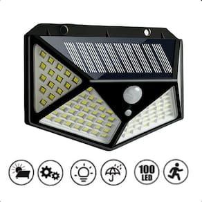 Especificações: Potência: 20w Luminosidade: 600lm Quantidade de leds: 100 Ângulo de iluminação: 270º Ângulo do sensor de presença: 120º Fonte de alimentação: solar Distância do sensor: 3-5m Classe de proteção: ip65 Material: abs Autonomia da bateria: 1200mah Cor do led: branco frio Tempo de uso: até 10h Tempo de carregamento: 2 - 7h no sol Resistente à água