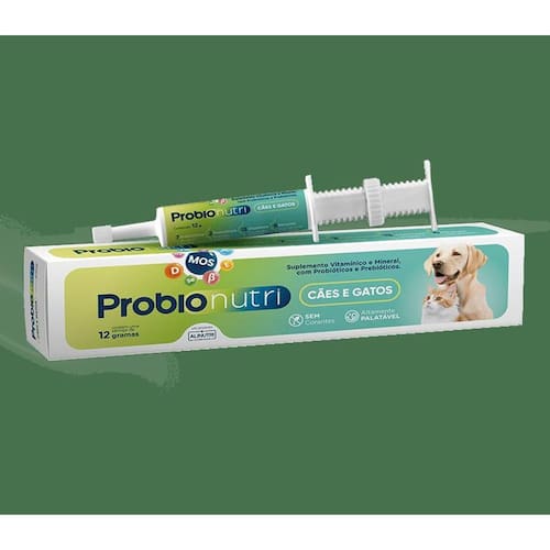Probionutri alinutri caes e gatos 12g Probionutri alinutri caes e gatos 12g suplemento vitamínico mineral de alto valor biológico, enriquecido com prebióticos e probióticos, para cães e gatos. Recomenda-se a utilização do produto antes, durante e após eventos estressantes que possam alterar a microbiota intestinal, tais como vacinações, cirurgias, viagens, mudanças de alimentação e durante uso de antibióticos. O produto poderá ser utilizado de forma consecutiva por 10 dias ou conforme recomendação do médico veterinário. Marca: Alinutri