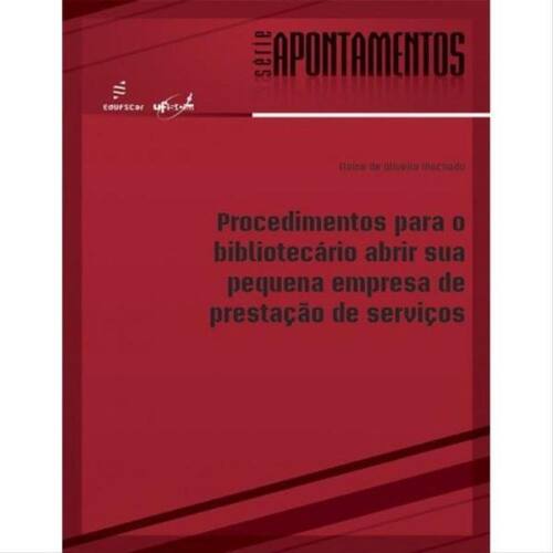 A Série Apontamentos tem por objetivo explorar preferencialmente textos de apoio didático a cursos de graduação ou pós-graduação. Sinopse Este Apontamento visa direcionar os passos do bibliotecário empreendedor, desde a ideia de seu negócio até a sua concretização, contribuindo, assim, para o desenvolvimento de uma cultura empreendedora do profissional e o informando sobre procedimentos necessários para abrir sua própria empresa na área de Biblioteconomia. Marca: EDUFSCAR - UNIVERSIDADE FEDERAL DE SÃO CARLOS **