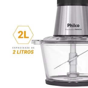 O Processador Compacto Philco PMN03A alia potência de 350W, jarra de vidro e design funcional para facilitar o preparo das suas receitas. Com 2 litros de capacidade, ele tritura, pica e mistura com eficiência, ideal para o uso diário.