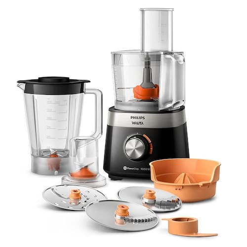 Processador de alimentos 1000w philips walita ri7303/90 220v O novo ri7302 série 5000 é o processador de alimentos perfeito para obter o desempenho máximo com grande versatilidade na cozinha. Com um motor com 1000 w de potência para um desempenho excelente e sem complicações no preparo de suas receitas favoritas. Recipiente com capacidade de 1,5 litros para preparar receitas para toda a família e 8 acessórios. Oferece versatilidade para criar suas receitas com ótimos resultados e desempenho Se os ingredientes forem duros ou se você quiser misturá-los com precisão, a tecnologia powerchop está do seu lado. Graças ao formato da lâmina, ao ângulo de corte e ao design do copo, você sempre terá os melhores resultados. 2 ajustes de velocidade com código de cores para um controle perfeito. Com a função de código de cores, você pode obter os melhores resultados de cada acessório usando a velocidade certa com base na cor. 8 acessórios para criar suas receitas favoritas, s-blade, copo de 2 litros, disco de metal 2 em 1 para fatiar e picar, disco para julienne, disco para batatas fritas, espremedor de frutas, batedor, triturador para criar suas receitas favoritas. internacional de 2 anos e bpa free. Características: - tecnologia powerchop - motor de 1000 w para um desempenho excelente - recipiente com capacidade de 1,5 litros - 8 acessórios que se adaptam perfeitamente ao seu uso diário - 2 ajustes de velocidade - função de código de cores Dados técnicos: - tensão: 220v - potência: 1000 w - consumo: 1,0 kw/h - capacidade da jarra do liquidificador: 1,5 litros - número de ajustes de velocidade: 2 - materiais dos acessórios: plástico e aço inoxidável - lâmina para alimentos: aço inoxidável - recipiente para polpa: san - material da carcaça principal: plástico pp - dimensões do produto axlxp : 22x19,5x18 cm - peso: 4,41 kg - : 24 meses Conteúdo da embalagem: - processador série 5000 - 1 jarra de processador com tampa - 1 jarra de liquidificador - 1 lâmina para ralar e fatiar - 1 lâmina de corte julienne - 1 disco de batata palito - 1 faca processadora - 1 moedor de grãos - 1 espremedor - 1 batedor de massas - manual de instruções Aqui você está em 1º lugar Ean: 8720389002496