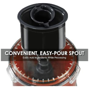 Processador de alimentos 2,3L com tigela selada, ideal para líquidos, fabricado em policarbonato resistente, com lâmina LiquiLock, disco de bater, bico para despejar e calha de alimentação grande.Porta-fio
