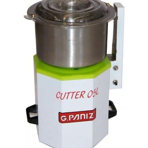 Modelo: CUTTER 05L Capacidade da cuba: 5 litros Estrutura em aço carbono com pintura epóxi; Cuba em aço inox 304; Facas em aço inox 420; Tampa em policarbonato transparente com sistema de segurança, resistente aos impactos do dia a dia; Fácil desmonte para a limpeza; Botão pulsador; Chave de segurança, só funciona com a tampa fechada; Alças para transporte; Tensão: 220V Potência (motor monofásico): 1/2 CV Consumo: 0,37 kW/h Velocidade: 1729 RPM Dimensões (AxLxC): 450 x 310 x 265 mm Peso líquido: 15 kg Peso bruto: 17 kg Garantia: 6 meses.