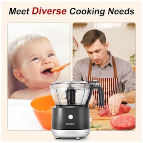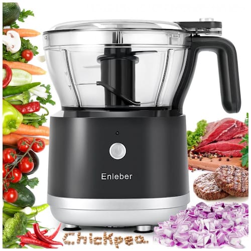 O processador de alimentos Enleber ZLJ002W é um mini processador elétrico compacto com tigela de aproximadamente 1 litro (4,5 xícaras), indicado para picar, fatiar, triturar, moer e fazer purês em pequenas porções. O motor em cobre de 200W processa até cerca de 900 g de ingredientes em poucos segundos, incluindo carnes, legumes, nozes e preparos para papinhas e alimentos de pets.