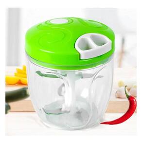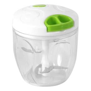 Processador Triturador Manual De Alimentos 5 Lâminas Cozinha Com esse processador de alimentos manual você consegue triturar seus alimentos na medida que precisa. É bem fácil de usar. Basta abastecer o compartimento com o alimento, colocar a tampa e em seguida puxar a corda retrátil. Em média 5 vezes é o suficiente para deixar o alimento bem triturado. Sua Cor é Branco com detalhes Verdes. - 3 Lâminas; - Funcionamento: Manual Sistema de Corda ; - Vasilha Transparente; - Dimensões: 13,5 cm x 12,5 cm x 10 cm