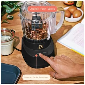 O mini processador de alimentos 3-Cup Food Chopper by Drew Barrymore, na cor rose, foi desenvolvido para preparo de pequenas porções em uso doméstico, com tigela de vidro de 3 xícaras adequada a receitas do dia a dia. O motor de 250W atua em conjunto com lâmina em aço inoxidável para picar, triturar e fazer purês de ingredientes como vegetais, ervas, nozes e bases de molhos.
