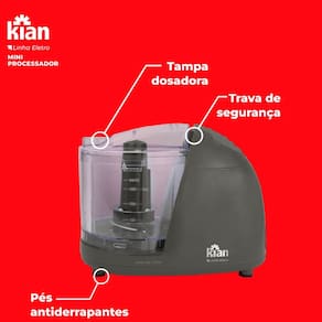 Tipo de alimentação: Corrente doméstica. Funções do processador de alimentos: Processar. Capacidade do copo processador: 500 mL. Capacidade do liquidificador: 300 mL. Quantidade de velocidades: 1. Com função pulsar: Sim. É apto para lava louças: Não. Com controle touch: Não. É livre de BPA: Sim. Eficiência energética: A. Materiais das lâminas: Metal. Material do corpo: Plástico. Material do copo processador: Acrílico.Acompanha copo