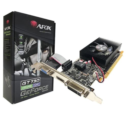 A Placa de Vídeo Afox NVIDIA GeForce GT 730 4GB feita para potencializar a capacidade gráfica do seu PC, conta com 4GB de memória de vídeo em DDR3 com interface de 128 bits, e resolução máxima de 2048 x 1536 em D-Sub e 2560x1536 em DVI. Tem saídas DVI, HDMI, VGA para expandir ainda mais a compatibilidade. Com a inigualável tecnologia NVIDIA, garanta respostas gráficas rápidas em seu PC.