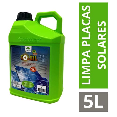 SOLEIL é um limpador multitensoativo para limpeza e proteção de painéis solares, removendo instantaneamente a sujidade. Além disso, deixa na superfície uma película protetora, conservando a superfície isenta de sujeira por mais tempo, protegendo contra ação de agentes, como: chuva, fuligem, poeira, maresia e demais incrustações. Restaura a transparência com ação antiaderente e autolimpante. favorecendo a captação e eficiência energética. Formulação inédita no Brasil composta por múltiplos tensoativos, agentes desincrustantes e formador de película que proporciona limpeza de alta performance e uma camada de proteção seca (PTFE) com brilho e acabamento hidrofóbico evitando acúmulo de sujidades e incrustações.