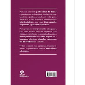 Ser um bom profissional do direito requer mais que conhecimentos teóricos e práticos, tendo em vista que a advocacia é uma atividade inerentemente interdisciplinar e que exige ética, respeito ao próximo e posturas específicas.Para preparar integralmente advogados, esta obra aborda diversos aspectos relacionados à profissão, contemplando desde a formação acadêmica e o perfil exigido até a busca por clientes e situações e documentos do cotidiano de trabalho.Trilhe conosco esse caminho de conhecimento e aprendizado sobre o exercício da advocacia.