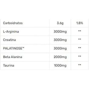 Prohibido, um suplemento pré treino que fornece energia do início ao fim dos seus treinos, aumenta a sua força, foco e concentração garantindo os melhores resultados em suas atividades. O produto é composto por beta alanina, arginina, creatina, taurina, L-Carnitina, L-tirosina e palatinose. Experimente